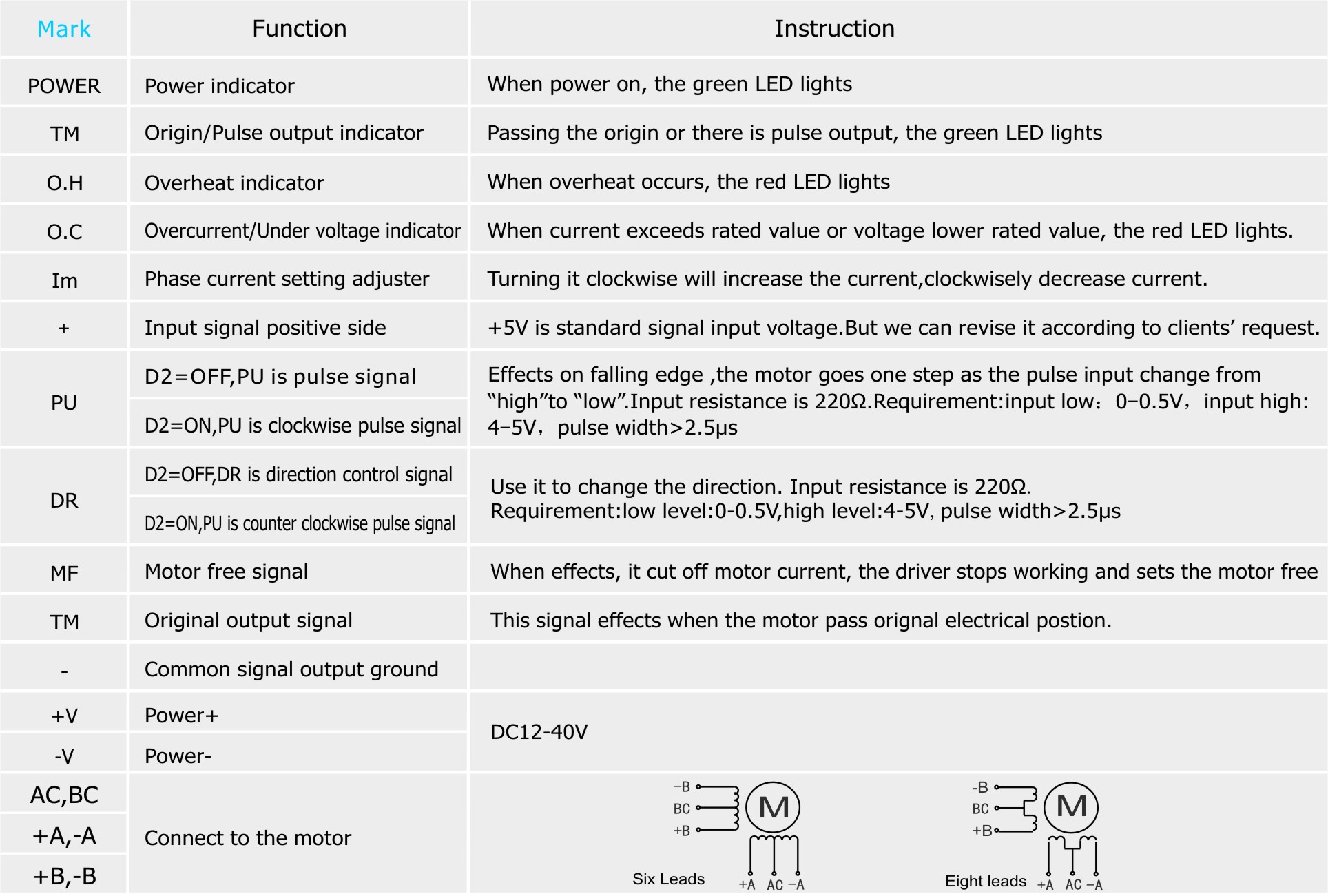3.Due to the special control circuit, this module only for 6 leads or 8 leads step motors.