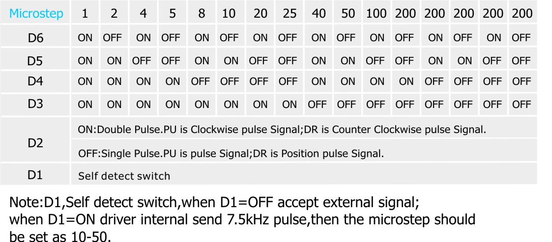 Microstep setting List